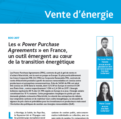 En 2020, les Green Corporate PPAs émergent sérieusement en France. Dans cet article, nous expliquons les raisons de cette émergence et les points d’attention à considérer lors de leur élaboration. Nous examinons aussi le cadre juridique dans lequel s’inscrivent les PPA. C’est probablement le premier article juridique complet sur le sujet. Il est publié en français pour l’instant, au BDEI – numéro spécial Energie, mais nous pouvons vous fournir une traduction sur demande.
